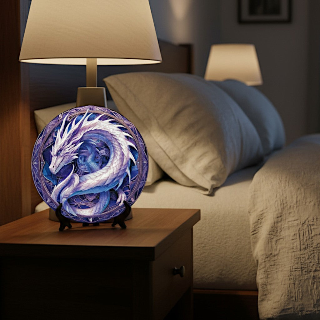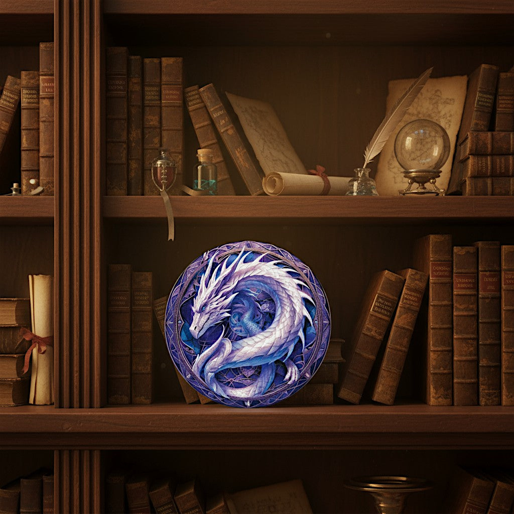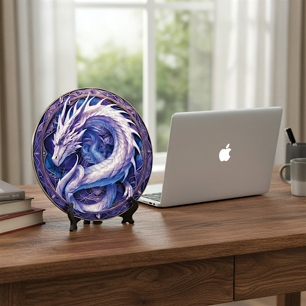 Whether you’re a dragon devotee, a lover of all things mystical and purple, or simply enchanted by ornamental beauty, this stunning plaque is a spellbound centerpiece waiting to adorn your hoard.