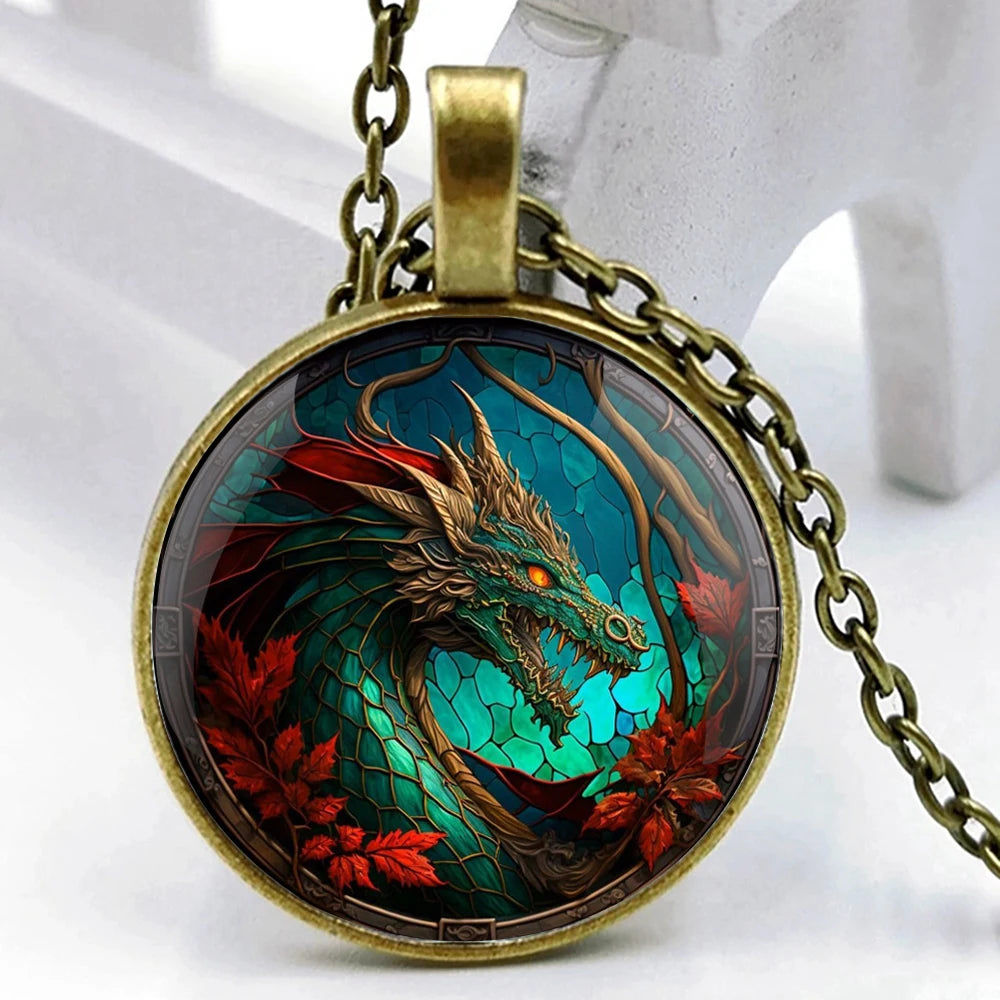 Verdantflare Medallion Unisex Dragon Pendant Necklace
