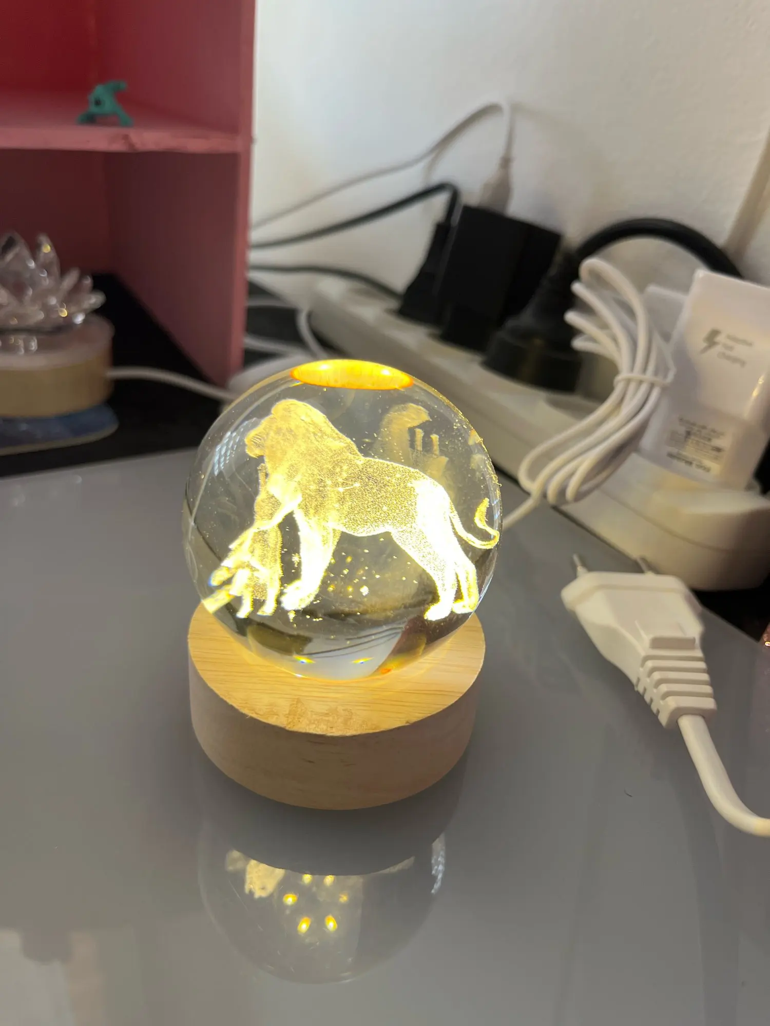 - Soft-glow LED light base with USB power --- to illuminate your space in mystic ambience